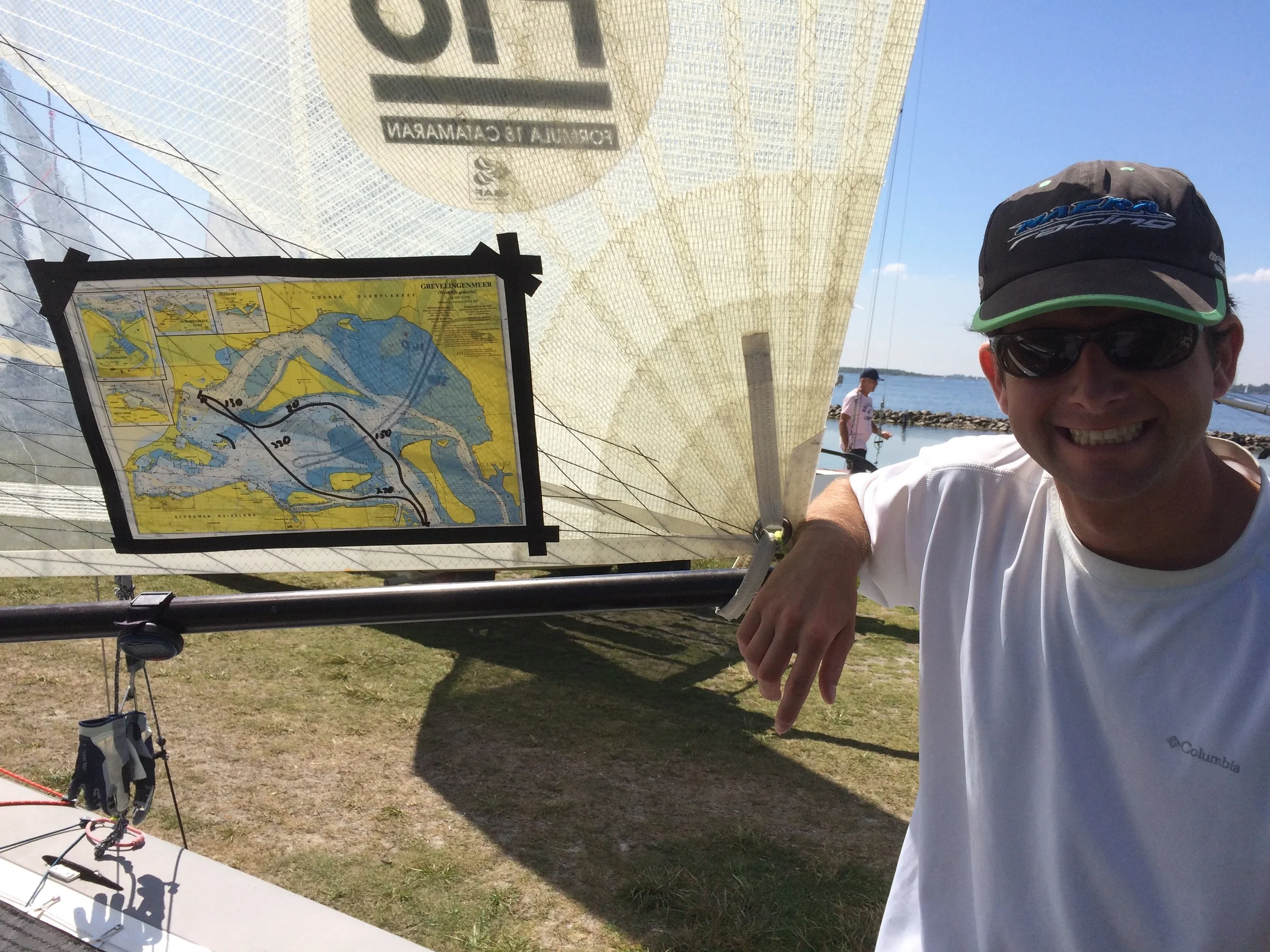 Matt in front of our sailing venue near Ouddrop, Netherlands. The Sunday buoys races will be on this bay whereas the Saturday long distance race will head south from here.